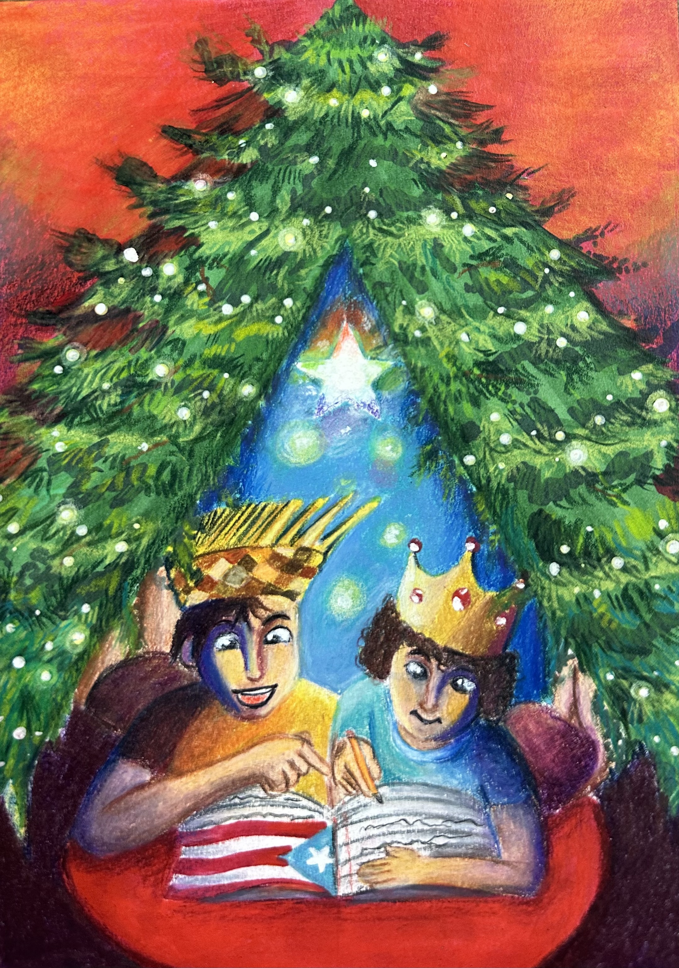 - El arte desarrollado debe incluir elementos navideños de Puerto Rico, ya que es una postal de navidad. No deben incluirse elementos navideños de otro país.